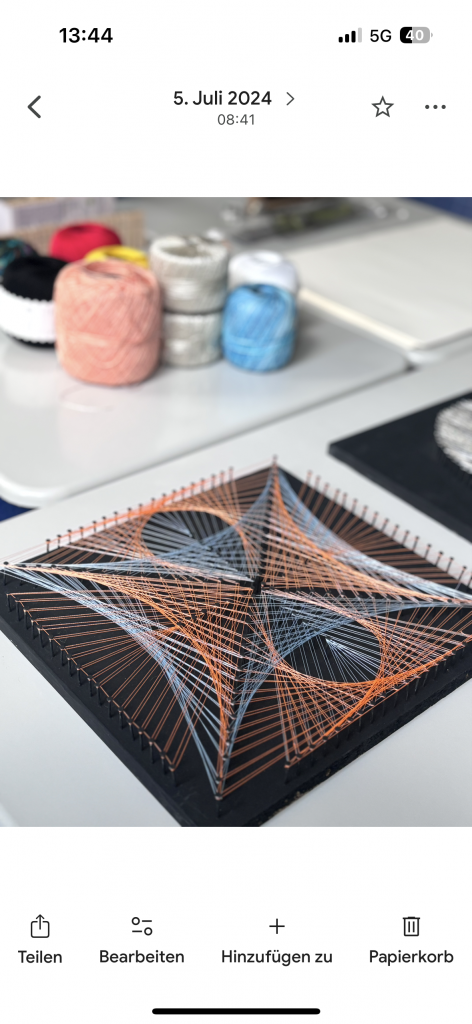Jeden Mittwoch lernst du bei mir Schritt für Schritt String-Art und erschaffst von Grund auf dein eigenes Kunstwerk, indem du verschiedene Farben und Muster miteinander kombinierst, um einzigartige Designs zu kreieren, die deine persönliche Handschrift tragen. Dabei wirst du nicht nur die Techniken erlernen, sondern auch die Möglichkeit haben, deine Kreativität auszuleben und dich inspirieren zu lassen, während wir gemeinsam in entspannter Atmosphäre arbeiten und Ideen austauschen.